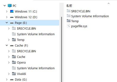 E ドライブ : 仮想メモリと一時フォルダー(環境変数 TMP,TEMP)